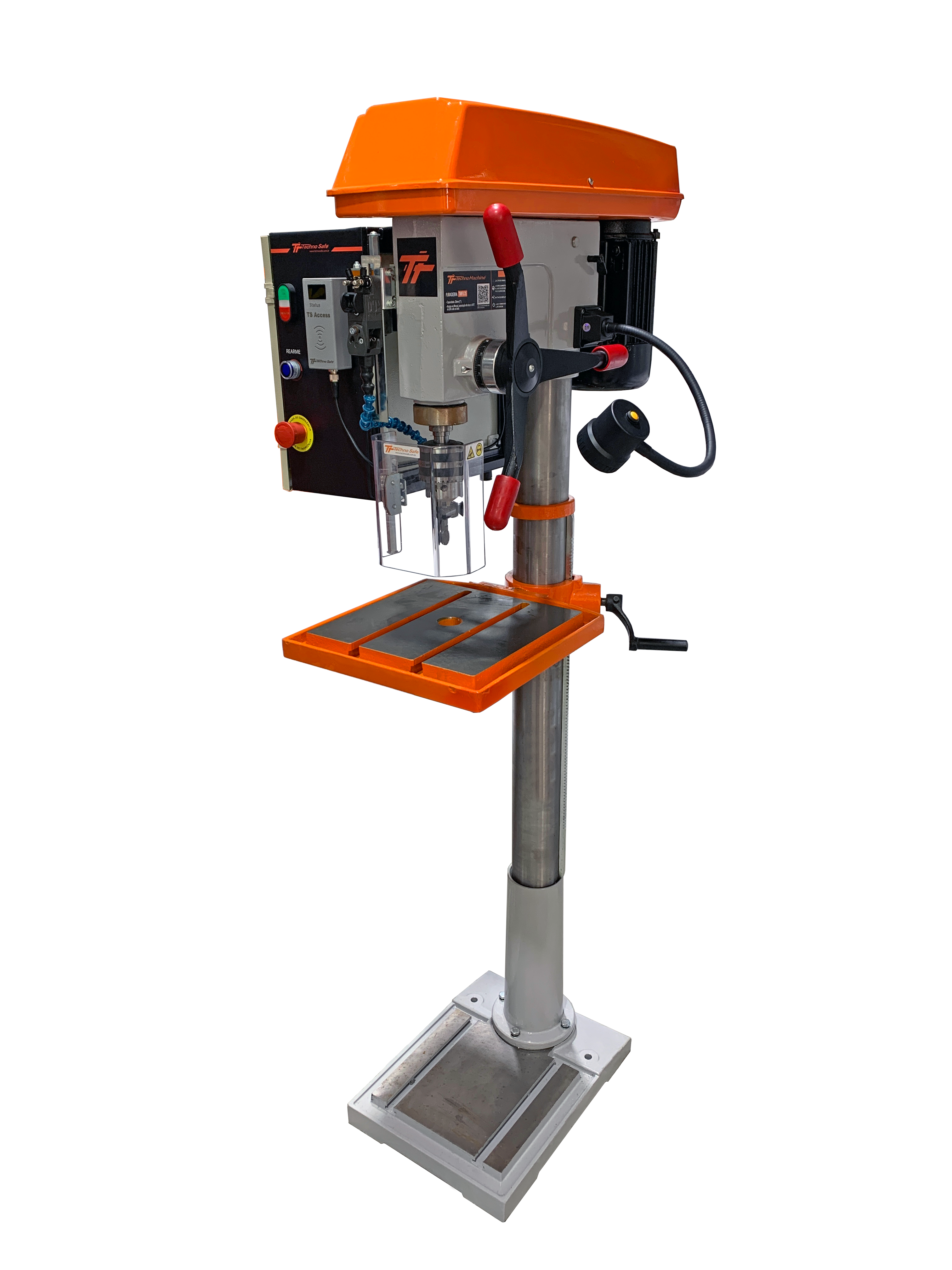 A Furadeira de Coluna TMFU25 é um equipamento de uso industrial projetado com foco em segurança, precisão e conformidade regulatória. Ela atende integralmente às rigorosas normas brasileiras NR12 (Segurança no Trabalho em Máquinas e Equipamentos) e NR10 (Segurança em Instalações e Serviços em Eletricidade)