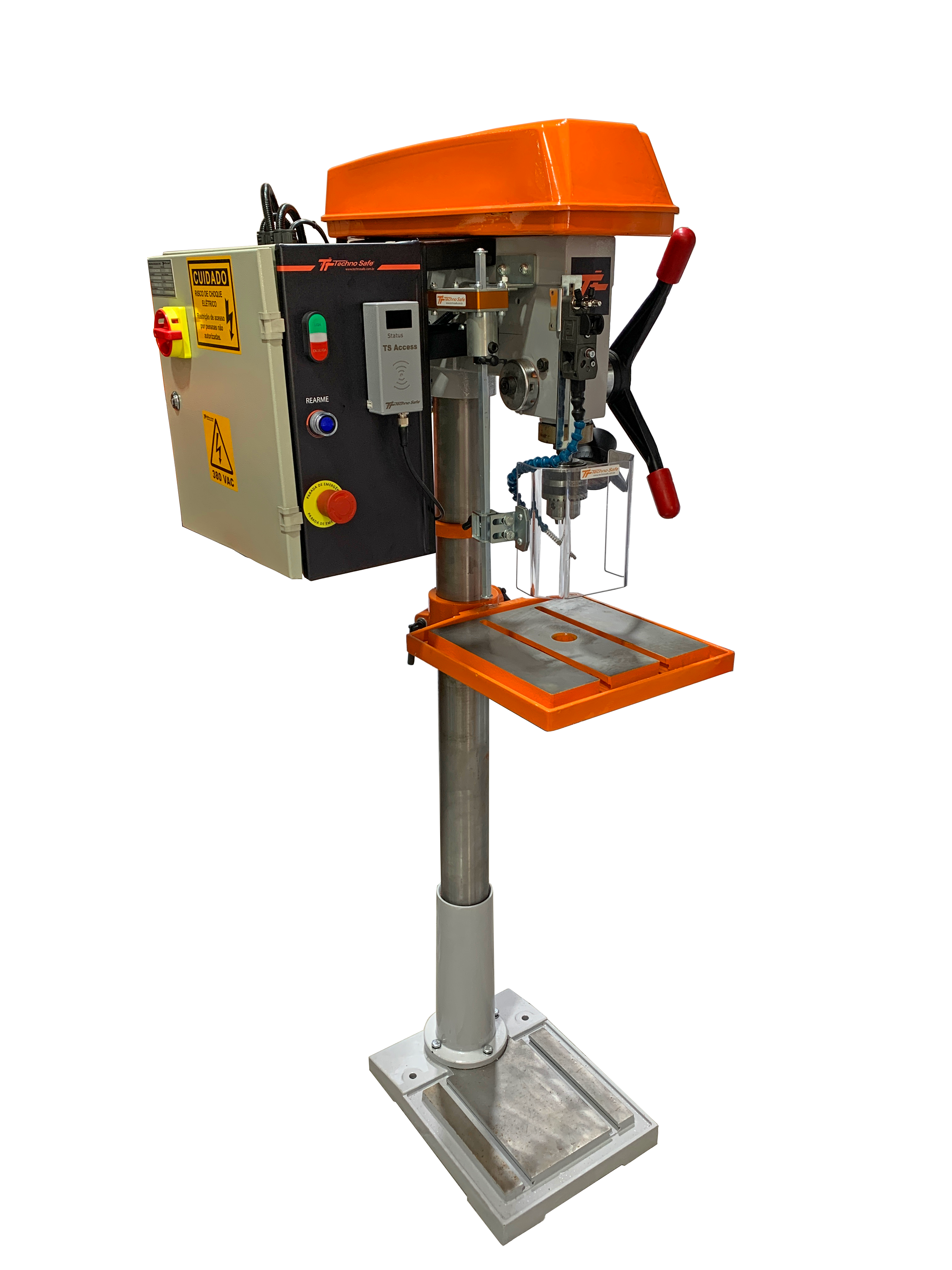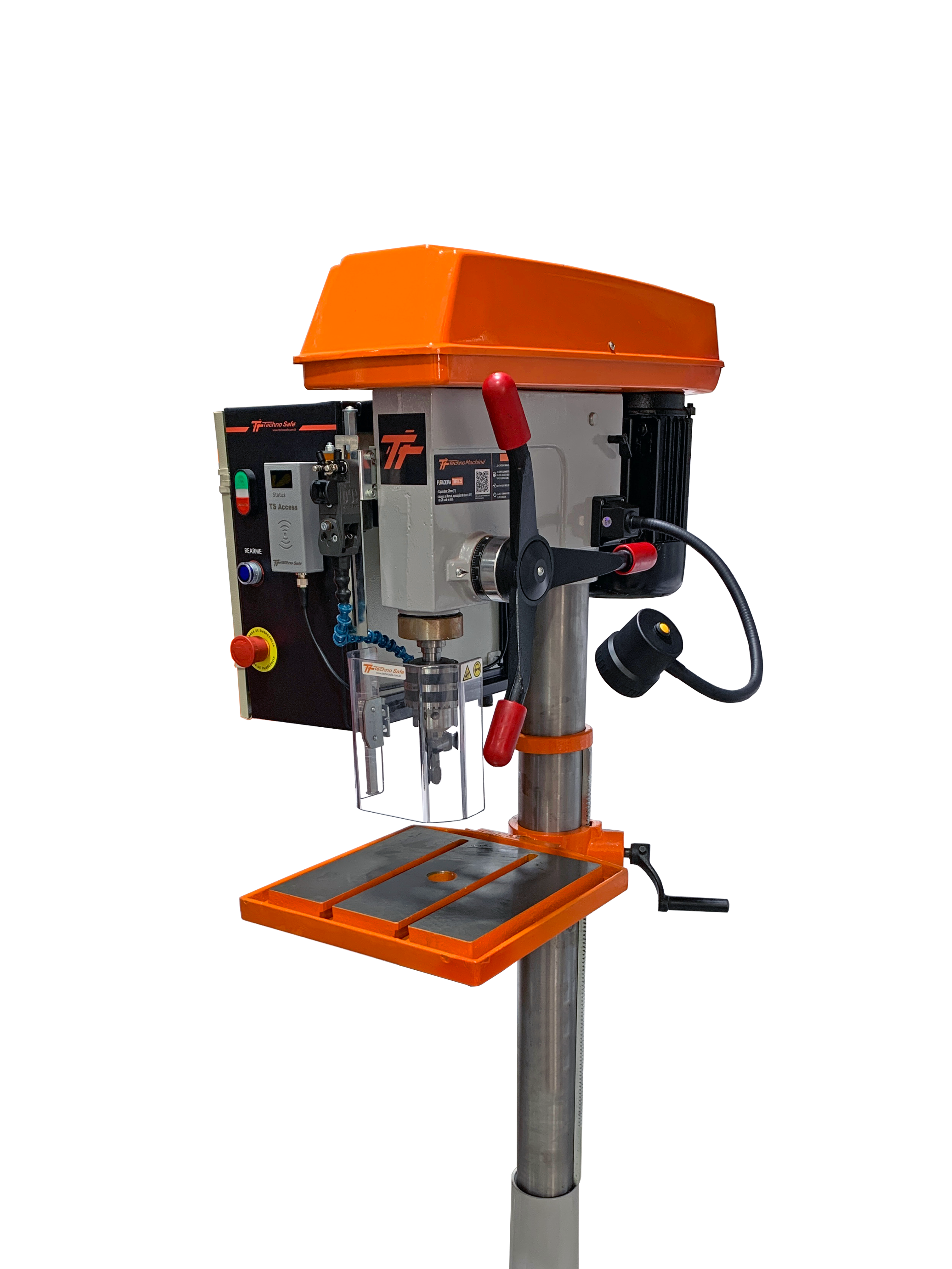 A Furadeira de Coluna TMFU25 é um equipamento de uso industrial projetado com foco em segurança, precisão e conformidade regulatória. Ela atende integralmente às rigorosas normas brasileiras NR12 (Segurança no Trabalho em Máquinas e Equipamentos) e NR10 (Segurança em Instalações e Serviços em Eletricidade)